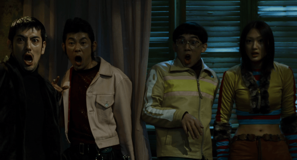 Between the incredible animated opening by Koike Takeshi and old promotional material, I was completely fooled into thinking Party 7 would be a stylish action piece before I flipped it on. While waiting for shit to hit the fan, I started to notice that the film is actually not an action piece, but an expertly crafted slowburn comedy. And once I was on board with that, the film was singing. Party 7 is masterfully written, bringing to life some genuinely insane[6]And perverted–this is really important. characters, gradually ramping up the stakes to make the situation more absurd in the best ways possible, and drops in bizarre vignettes for light backstory throughout. It helps that it also has a super stylish aesthetic, boasting some masterful costume design, and gets great mileage out of a handful of cool sets. And of course, it ends on an excellent gag–just as it should.