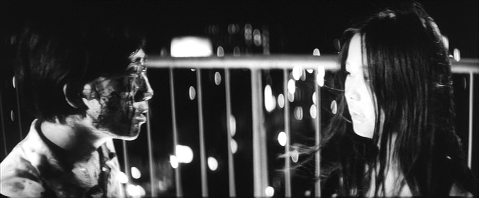 Wakamatsu’s early films have a bold artistic style that mixes black-and-white scenes with striking splashes of color, matched to chic found music[4]Read: Stolen. Like, physically, from record stores.. While this approach can start to feel played out as you see more of his works, he brings his A-game to Yuke Yuke. The splashes of color effectively depict shocking events, the black-and-white scenes are shrouded in oppressive shadows, and the cinematography is a cut above Wakamatsu’s already high bar. The soundtrack is composed of quiet haunting cries, melancholy jazz tunes, and a ghostly theme song by one of the stars of the film, Akiyama Michio–or “Obake[5]“Ghost,” as he was appropriately known as.”.